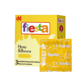 Fiesta Honey&Banana is banana flavoured with a touch of honey to give a sweet and tasteful all-round sensual experience. Fiesta is a premium condom brand that comes in 13 exciting variants of styles, colours, textures, flavors, shapes and sizes that increase the sensation for both partners.